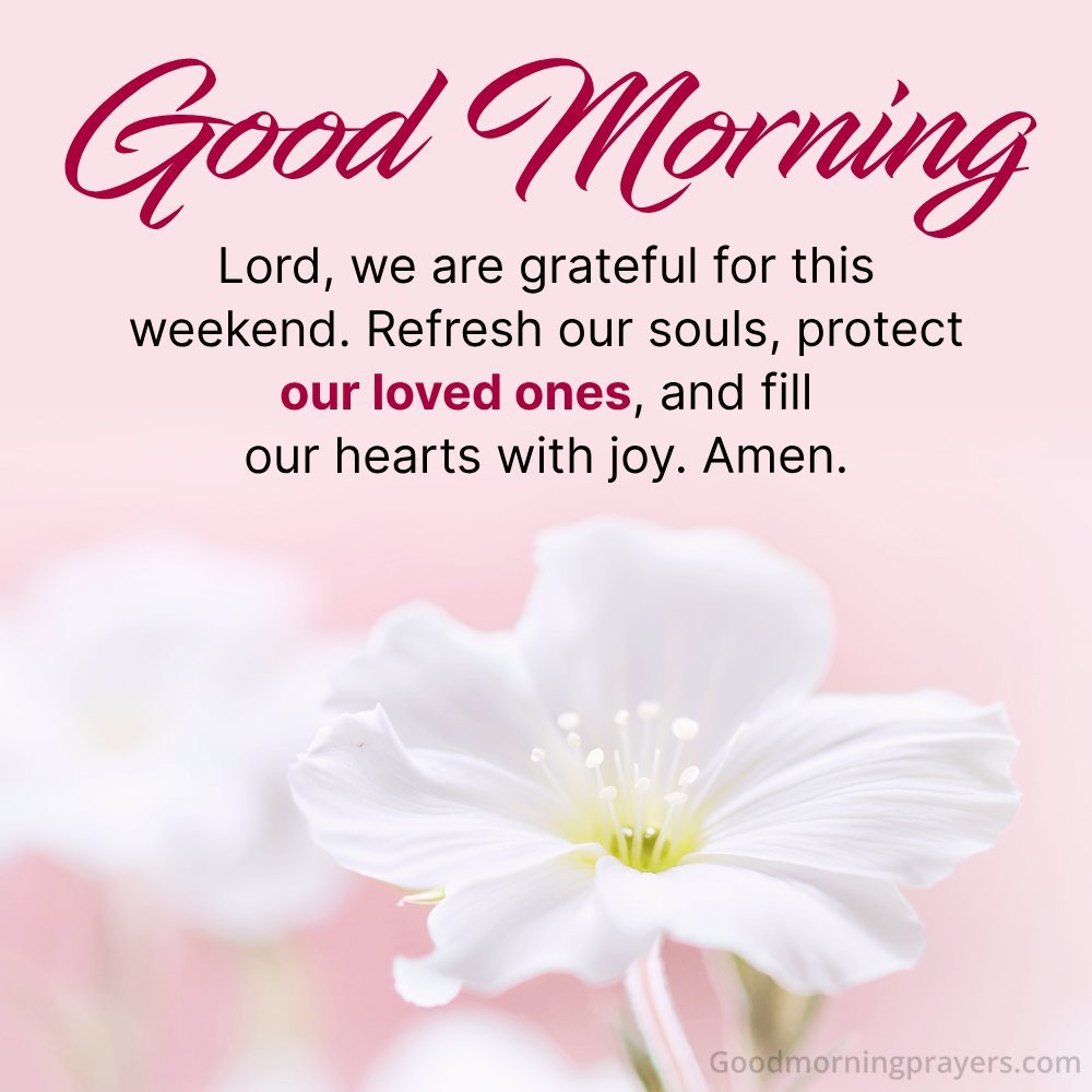 What should I include in my weekend morning prayer?Include gratitude, a request for blessings, protection for loved ones, and a desire for peace, joy, and guidance throughout the weekend.